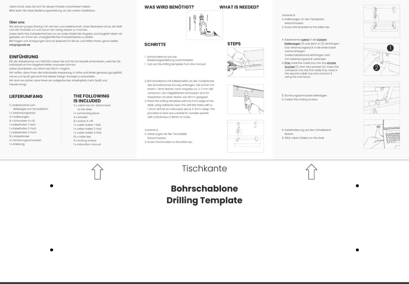Die Montage darf nur an stabilen Tischplatten aus Massivholz oder ausreichend dicken Spanplatten erfolgen. Prüfen Sie vorab, ob Ihre Tischplatte für die Verschraubung geeignet ist.